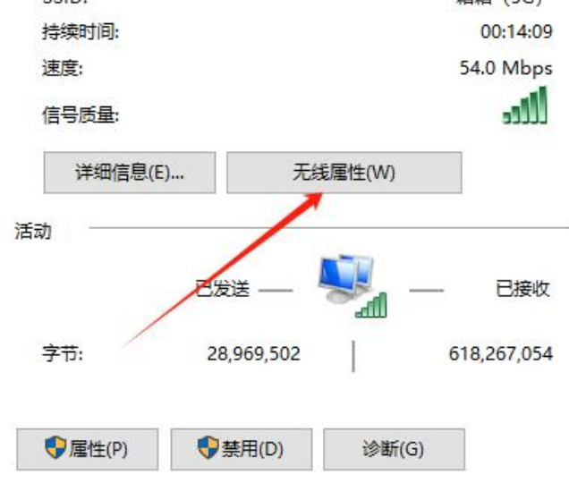 在彈出的窗口中點(diǎn)擊 "無線屬性"(Wireless Properties)