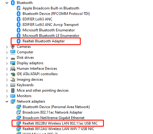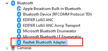 藍(lán)牙設(shè)備(如Realtek Bluetooth Adapter)顯示正常