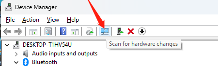 在設(shè)備管理器頂部菜單 → 點(diǎn)擊 "操作" → 選擇 "掃描檢測硬件改動"
