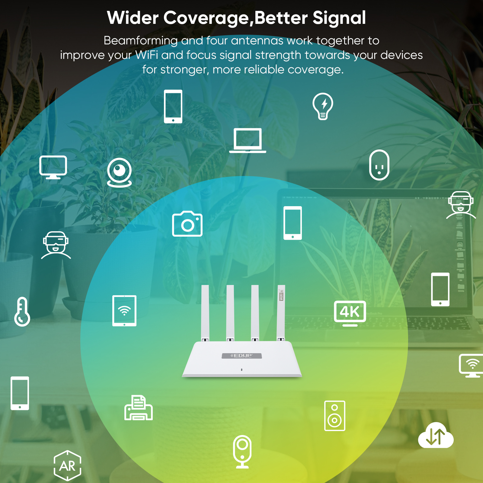 - 高增益天線:4根5dB外置天線,信號覆蓋更廣,抗干擾更強。